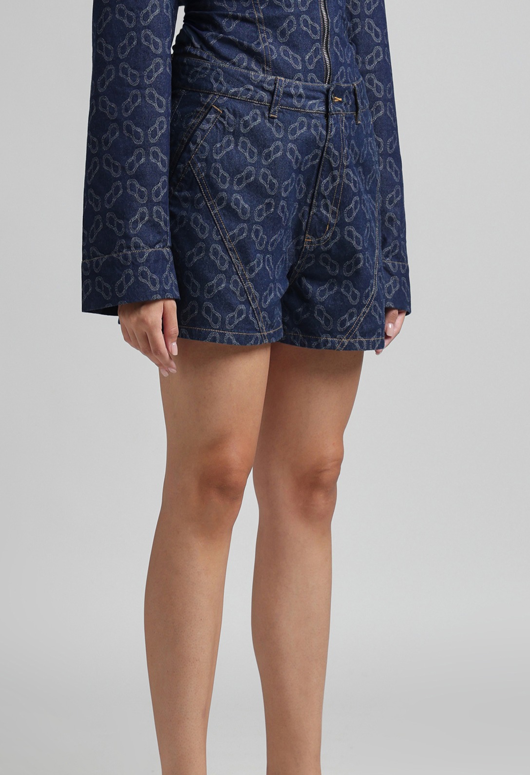 High Waist Shorts Jacquard Denim